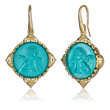 Aqua Blue Intaglio Cupid Earrings