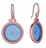 Light Blue Intaglio Pegasus 18k Rose Vermeil Earrings
