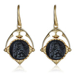 These earrings feature handcrafted intaglios made from Venetian glass, mounted in vermeil.